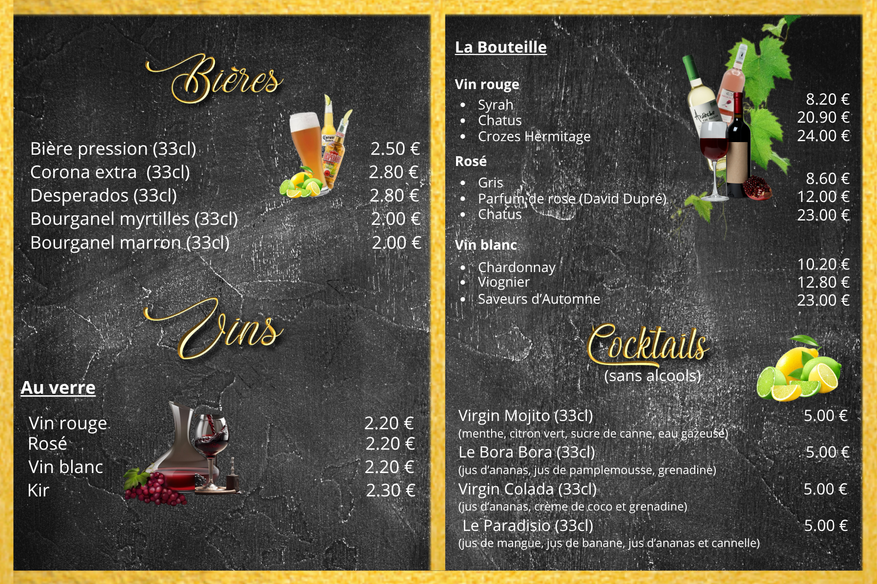 1 panini au choix + 1 boisson (canette/bouteille d'eau 50 cl) + 1 dessert au choix